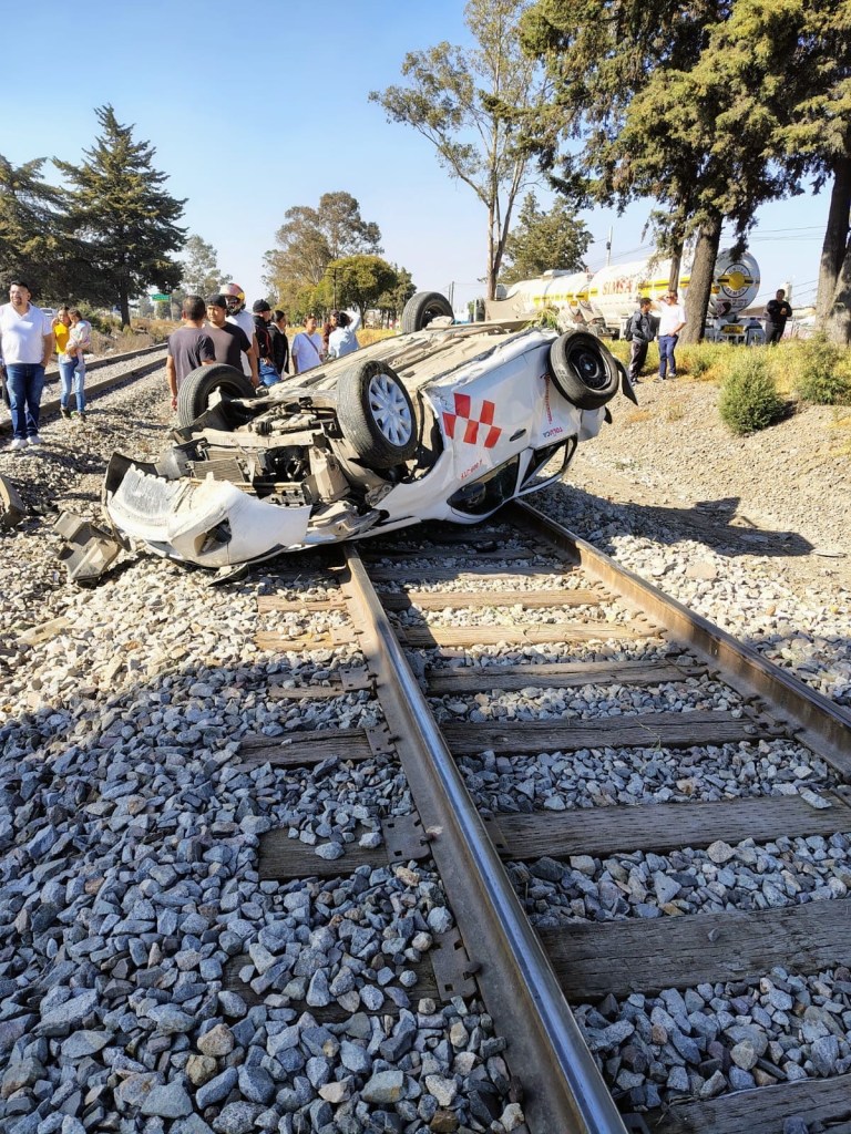 Tráiler embiste taxi y lo avienta hasta las vías del tren en la Toluca-Palmillas; una mujer una niña quedaron lesionadas