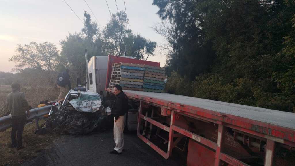 Cuatro personas fallecieron a bordo de un taxi, luego de impactar de frente contra un trailer, sobre la carretera Tenango – Tenancingo, a la altura de parque Galeana de la comunidad de San Pedro Zictepec, Tenango Del Valle, durante la madrugada de este lunes.