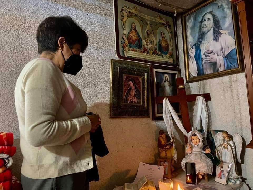 Delante de un altar de varios santos que está en la sala de la casa, doña Juana y sus tres hijos restantes, portan fotos de Jhon en sus celulares. Y allí Juana implora a quienes se llevaron a su hijo, que se lo devuelvan. Les implora, como lo hace el resto de madres que viven una desaparición forzada.