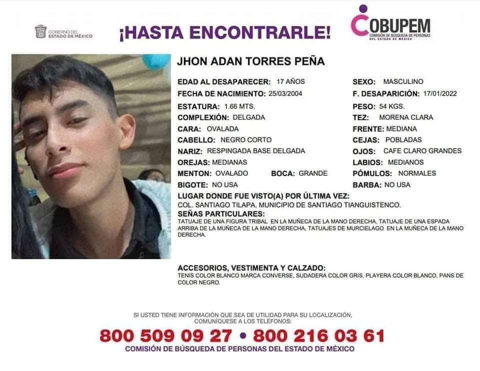 La Gustavo Baz cruza el pueblo de Santiago Tilapa, hay unos locales comerciales, lotes a cielo abierto y viviendas comunes. Jhon Adán Torres Peña, de 17 años, debió caminar por la Gustavo Baz el 17 de enero de 2022, fecha en que desapareció. Pero ni las cámaras de los negocios ni sus vecinos han arrojado una pista concreta.