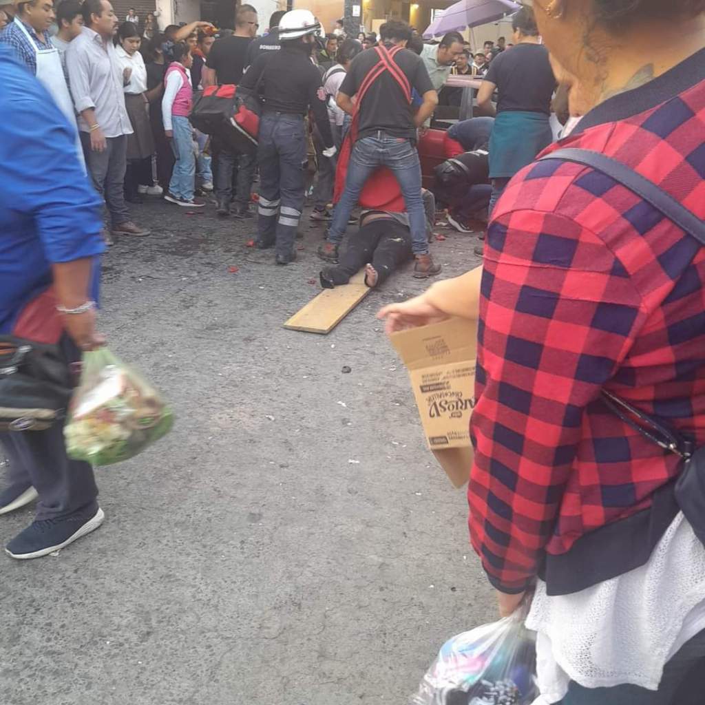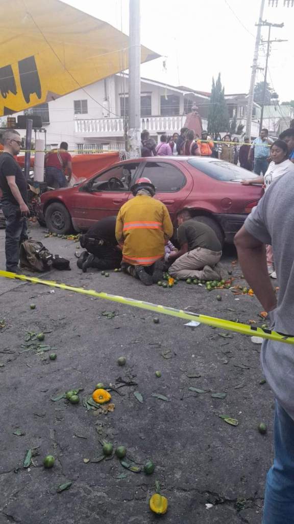 El vehículo color rojo derribó varios puestos de fruta y en su paso, arrolló a las personas.