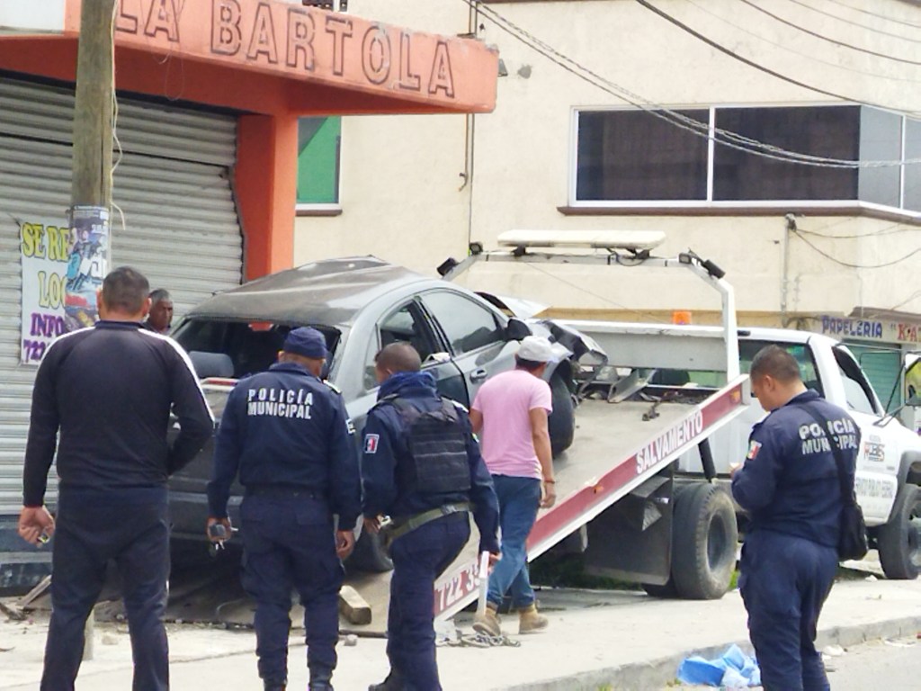 La familia viajaba a bordo de un coche color negro marca Chevrolet, el cual quedó estampado contra locales comerciales.