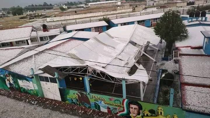 Una de las zonas fue la localidad de Santa María Tetitla, así como la escuela primaria Vicente Guerrero, donde el granizo derribó el techo.