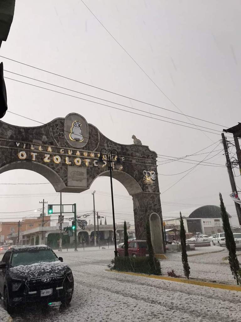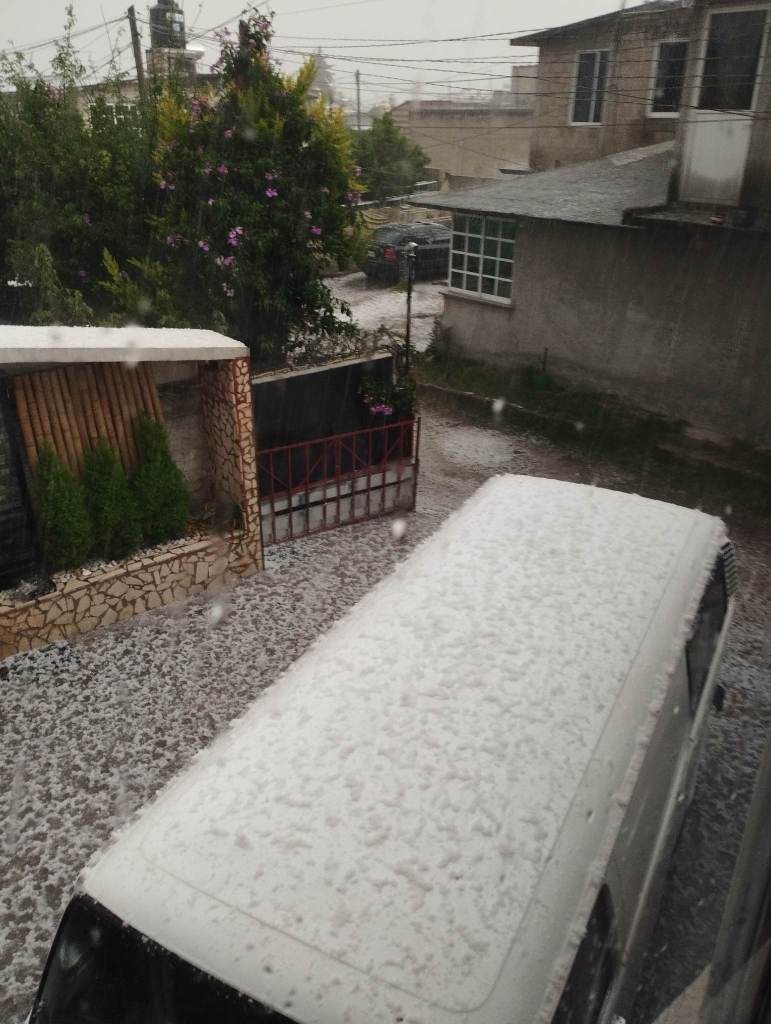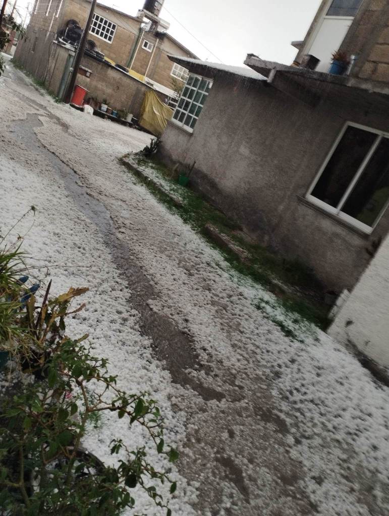 Una fuerte granizada se registró la tarde de este jueves en el municipio de Otzolotepec dejando un panorama blanco y provocando la caída de un techo en una escuela.