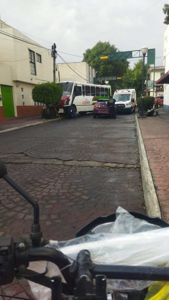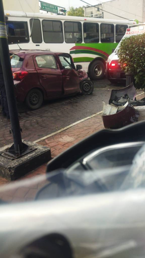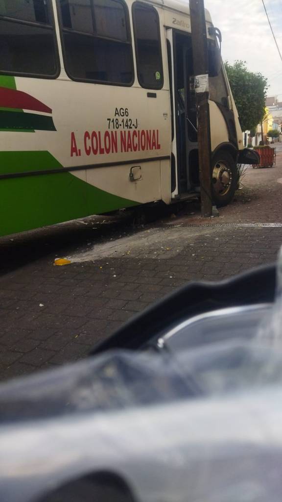 En un primer hecho, un camión de la empresa Colón Nacional chocó contra un vehículo particular en la calle Nicolás Bravo caso esquina con Morelos, al circular por una calle prohibida para el transporte público.