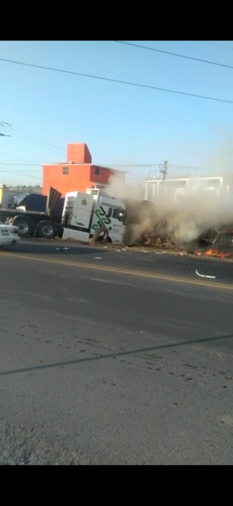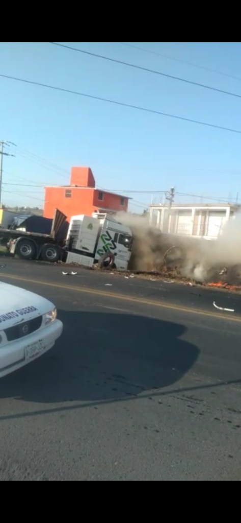 El choque de dos camiones de carga provocó el incendio de uno de los tráiler en la carretera Toluca-Zitácuaro la mañana de este jueves; una persona falleció calcinada al interior de la cabina.