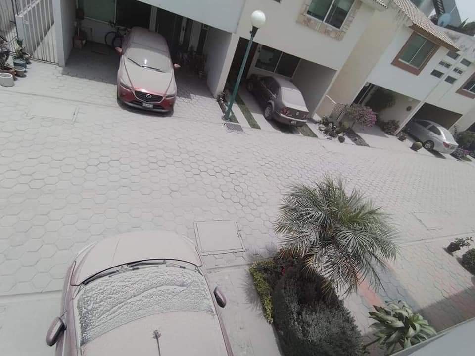 Así lucen las calles de Puebla y varios municipios a su alrededor, tras la recientes fumarolas que ha dejado el volcán Popocatépetl «Don Goyo», con una gruesa capa de ceniza que cubrió durante la madrugada y mañana de este lunes.