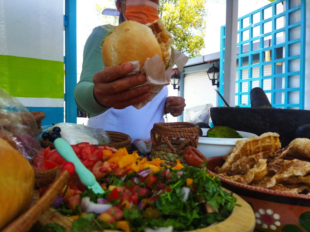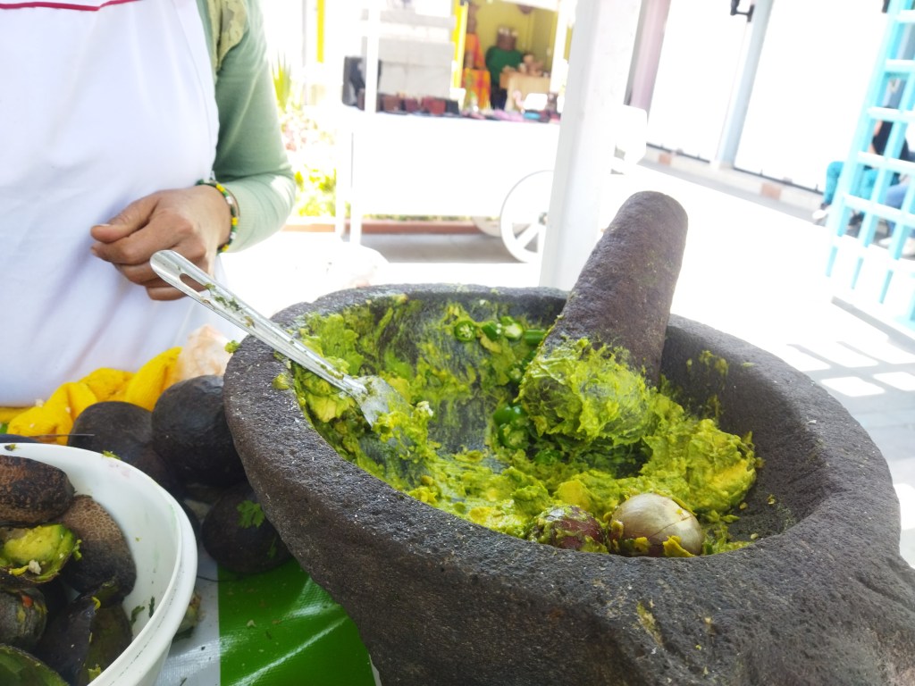 Una embarrada de eso grasocito color verde llamado aguacate, al que la cocinera lo condimenta con chile serrano y cilantro. De lado, un poco de ensalada con chiles manzanos para que pique más. Si se le antoja, queso y chicharrón.