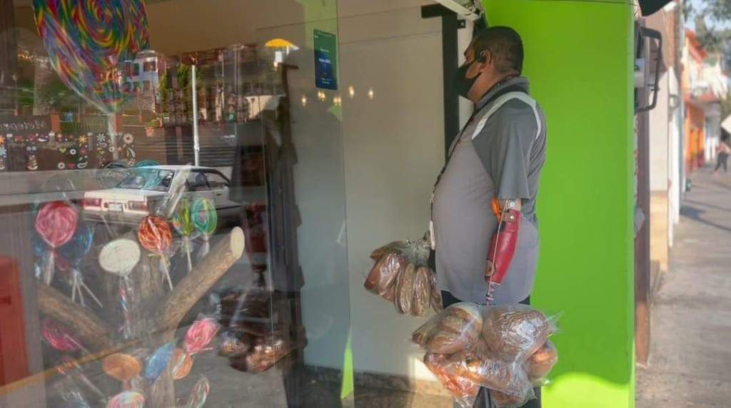 Si lo ves no dudes en apoyarlo y probar su delicioso pan, nos comparte que es un trabajo pesado, ya que de 100 locales apenas y vende 20 bolsas, caminando alrededor de 5 horas o más para lograr su venta del día.