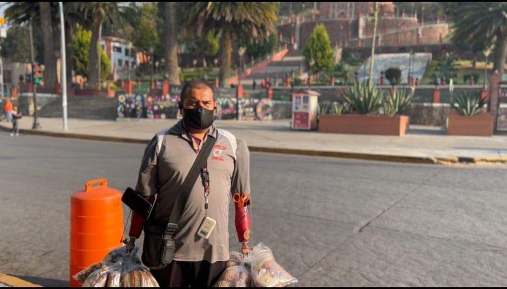 Actualmente a sus 41 años viaja desde Chapultepec y se dedica a la venta de pan artesanal, durante toda la semana toca puertas para ofrecer su producto, los días lunes recorre alrededor de cien locales en calles de Metepec, logrando la venta de al menos 20 bolsas de su pan que son enganchadas en los fierros de sus prótesis.