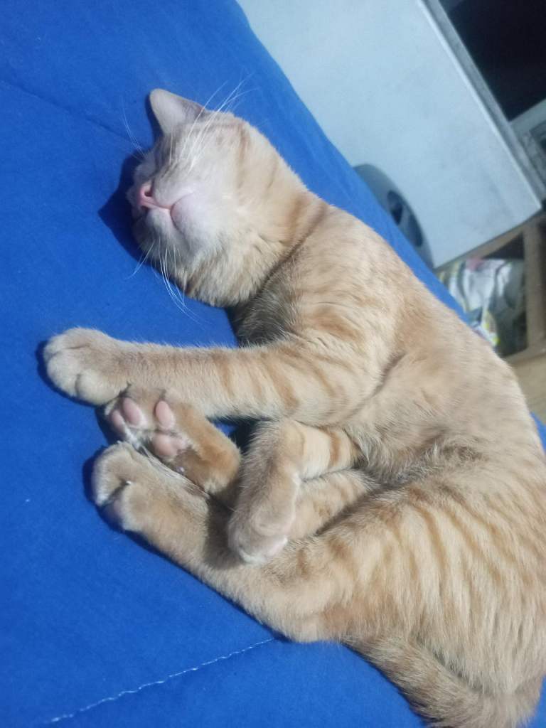 A él le pusieron Garfield y fue adoptado por Kar Sánchez, quien le dió una segunda oportunidad.