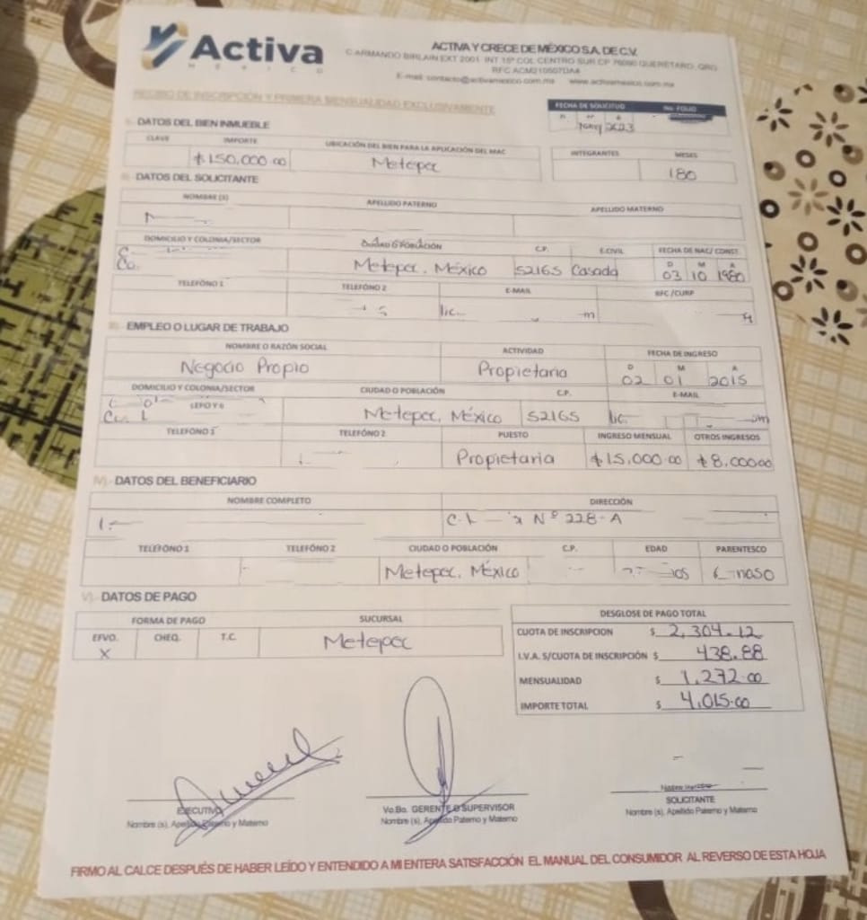 Al percatarse de que se trataba de un posible fraude, Teresa pidió cancelar el contrato para que le devolvieran su dinero. Sin embargo, los empleados de la presunta financiera, le pidieron hacer la solicitud a su matriz en Monterrey, Nuevo León.