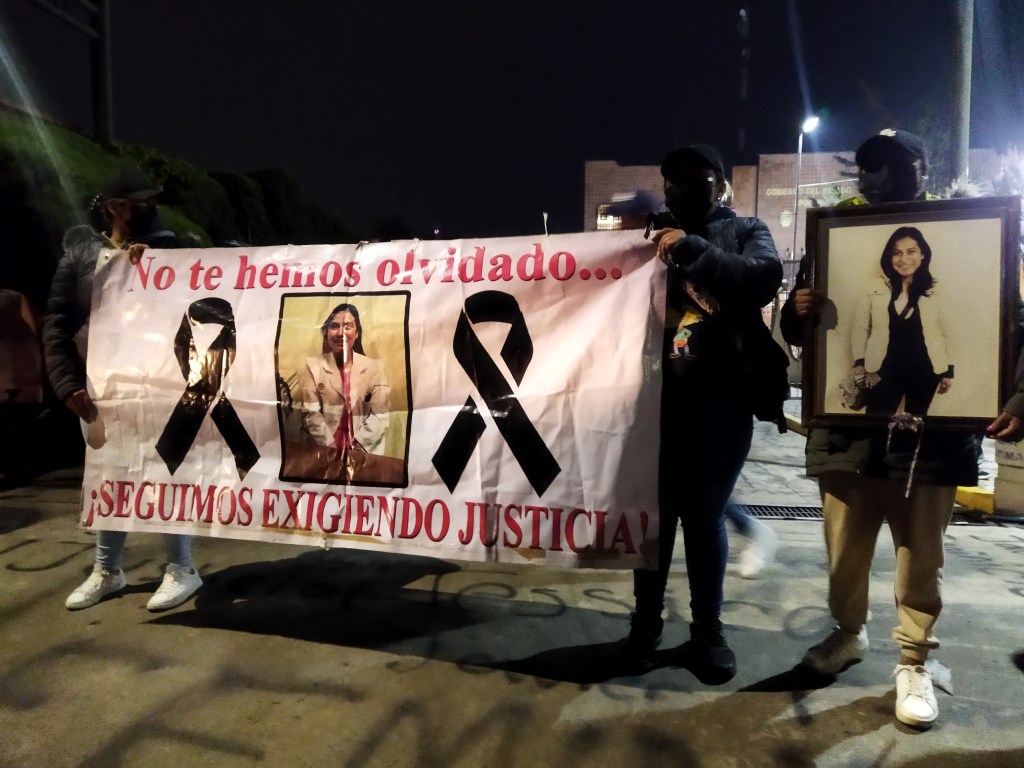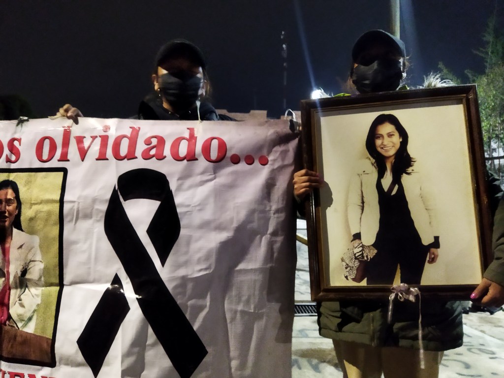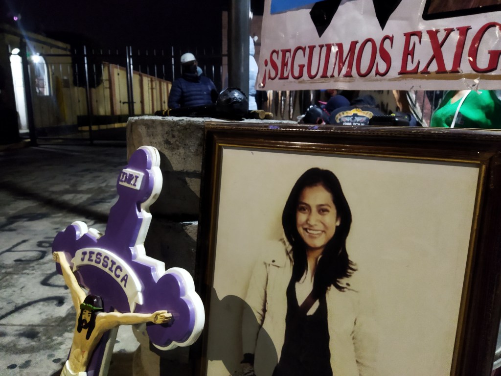 Es un ramillete de gentes que han perdido el ánimo con el frío de la noche. La hermana de Jessica y las colectivas ya pusieron un altar en el brazo de una lámpara frente al enrrejado de los juzgados.