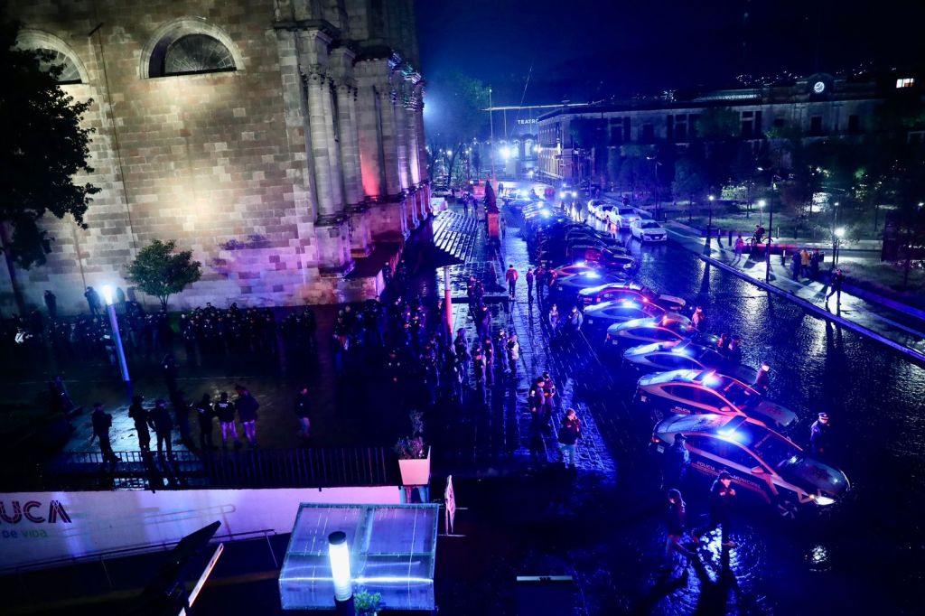En punto de las 20:00 horas de este miércoles se desplegaron cinco células integradas por 120 elementos municipales y 70 unidades vehiculares de la Dirección General de Seguridad y Protección de Toluca, 24 elementos y cuatro unidades de la policía estatal, así como 30 elementos y 15 vehículos de la FGJEM.