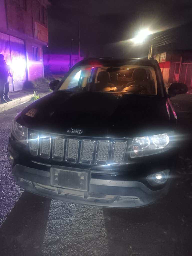 La unidad contaba con alerta por parte del Grupo de Coordinación Interinstitucional por robo con violencia, características idénticas del Jeep modelo 2014, con placas de circulación NYV3669 y número de serie 1C4NJCABXED826049.