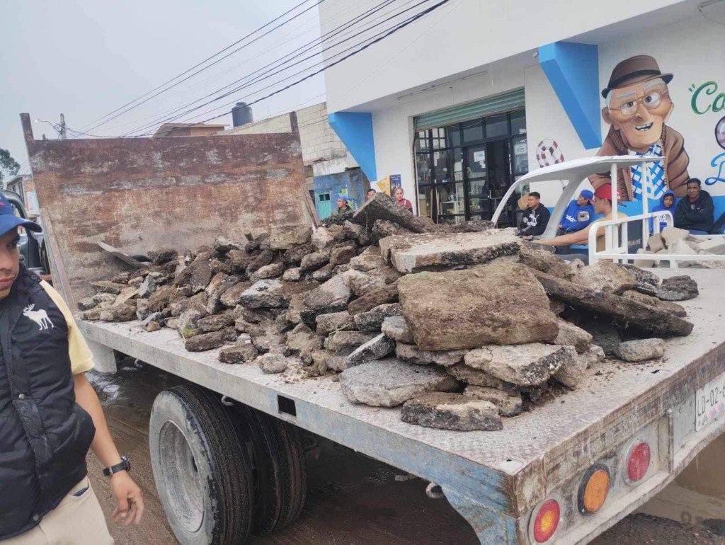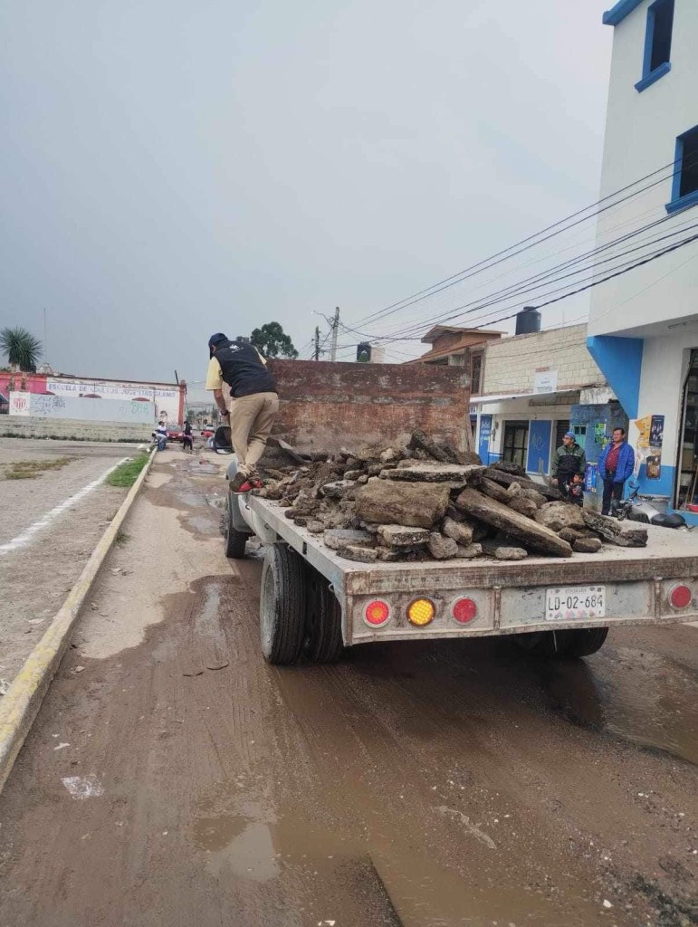 Con ayuda de una camioneta de carga trasladaron cascajo y tendieron el material en las zonas más afectadas.
