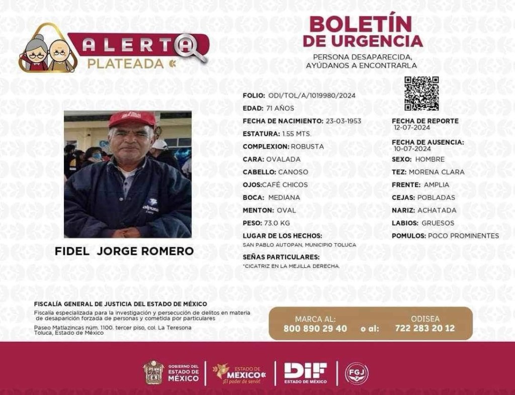 De acuerdo con el informe, Fidel “N”, de 71 años, había sido reportado como desaparecido el 10 de julio pasado y se giró una ficha de búsqueda.