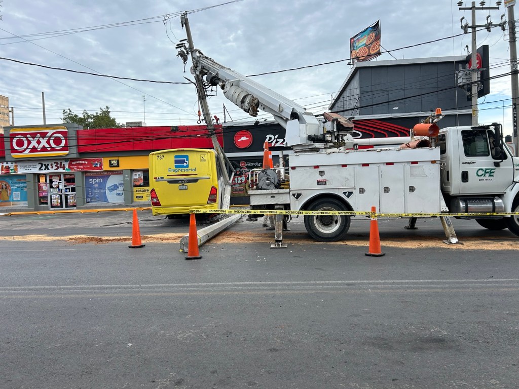 Según el reporte, el conductor del camión maniobró hasta golpear con un poste de luz y luego impactar contra la fachada de una tienda Oxxo.