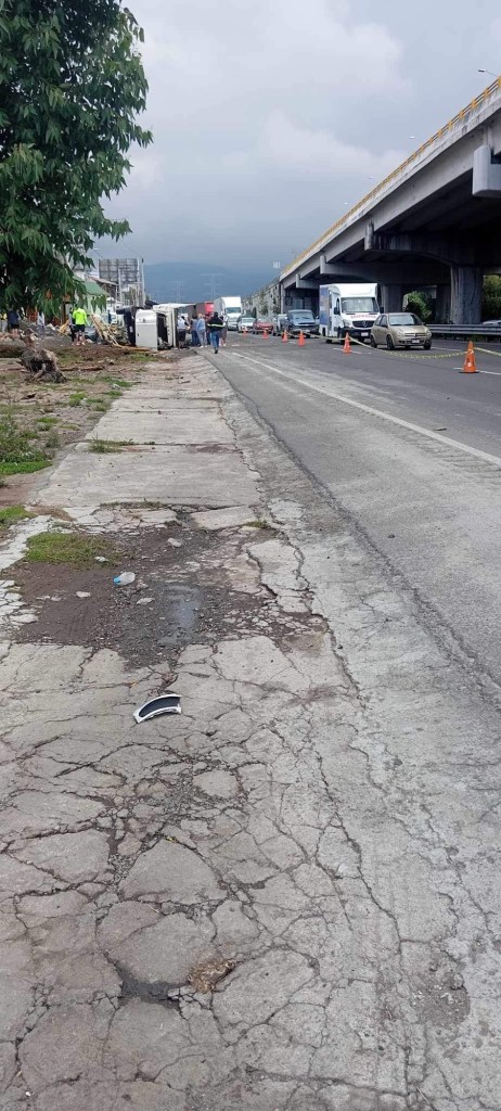 La unidad de carga en su paso chocó contra un camión torton, el cual quedó volcado, así como otros vehículos particulares.