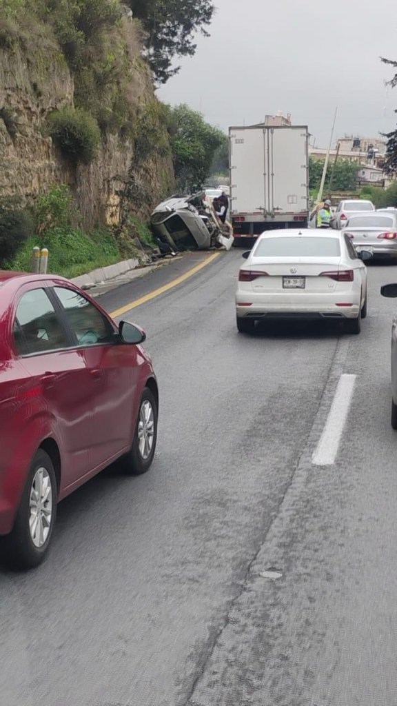 Un tráiler impactó un taxi en la carretera Toluca-Atlacomulco en dirección a Toluca, a la altura del kilómetro 26 antes de llegar al Puente de San Bernabé la mañana de este lunes.