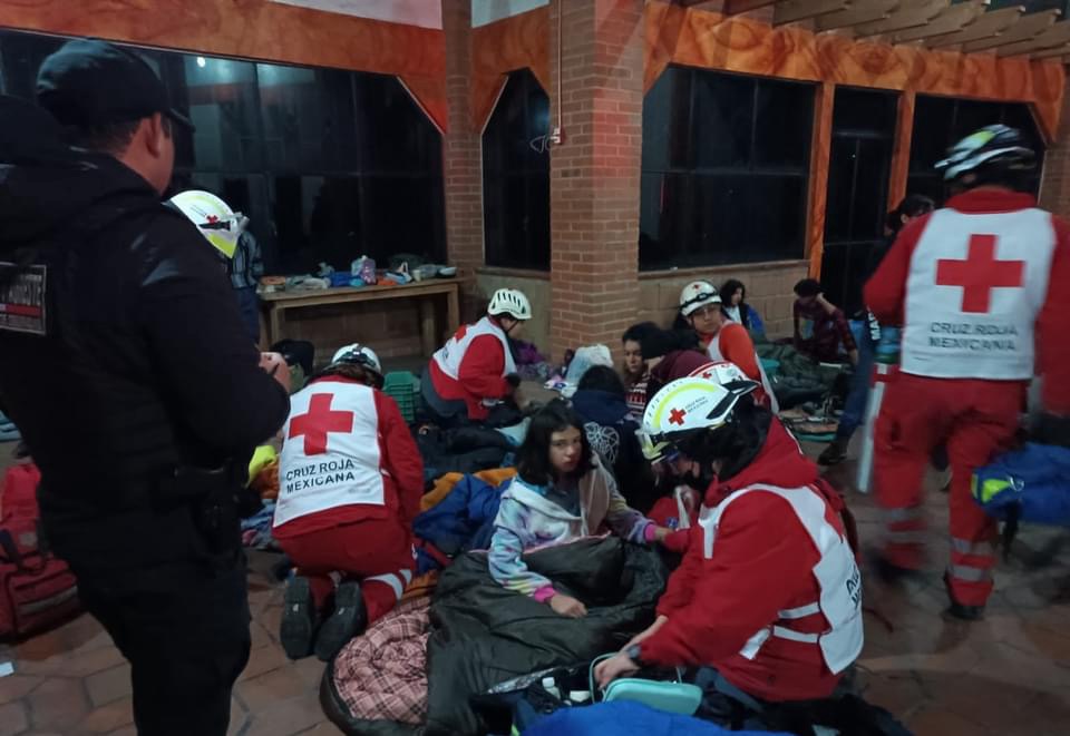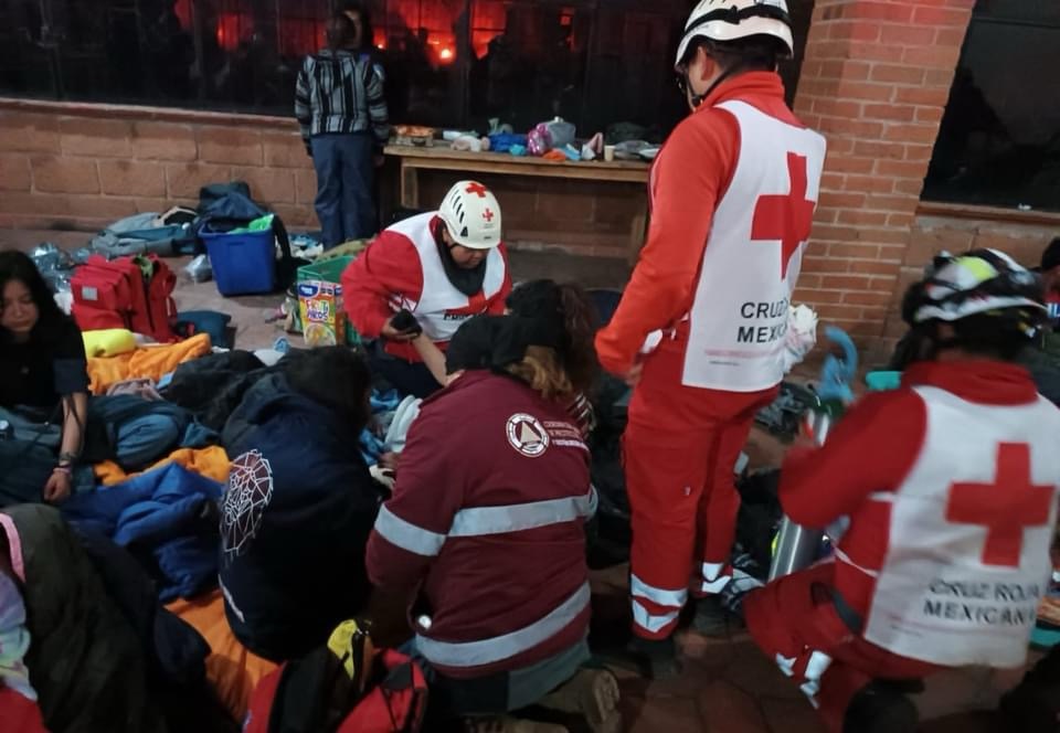 📌En Amecameca, Cruz Roja, Estado de México brindó atención prehospitalaria a integrantes de un grupo de 60 niños y 17 adultos en las faldas del volcán Iztaccíhuatl, tuvieron problemas para regresar al lugar donde acampaban por una intensa lluvia.