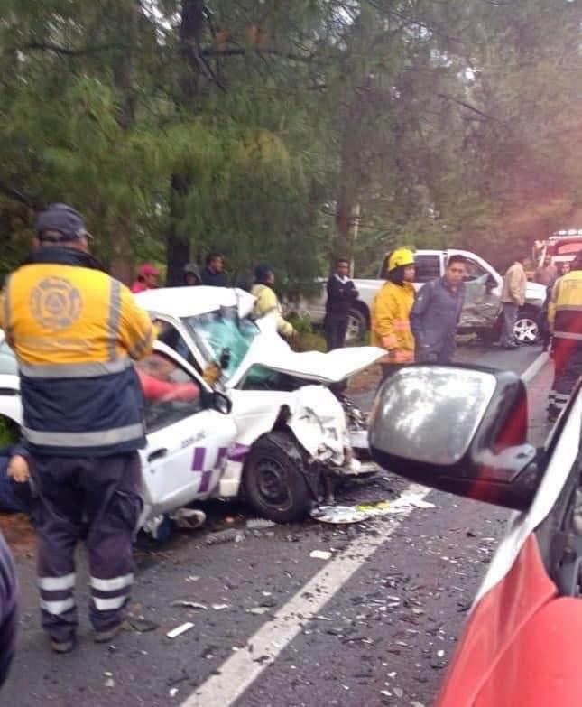 El choque de un taxi colectivo dejos dos personas sin v!da en la carretera Toluca-Zitácuaro a la altura de Villa Victoria.