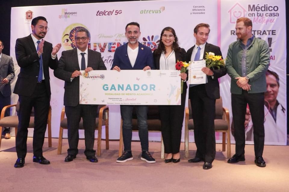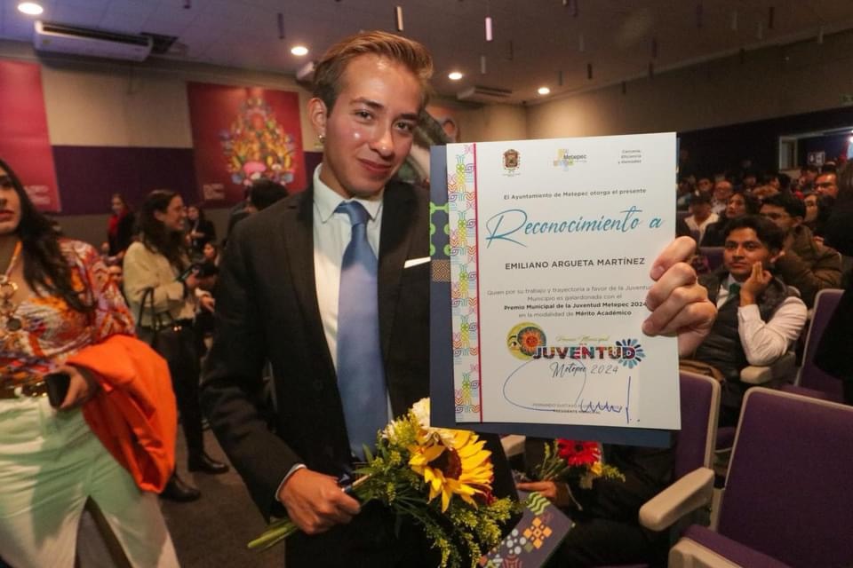 El alcalde de Metepec, Fernando Flores entregó este viernes el Premio Municipal de la Juventud 2024 a un grupo de jóvenes por su destacada labor en diferentes rubros y sectores.