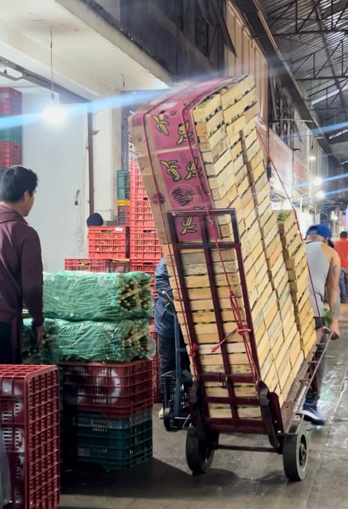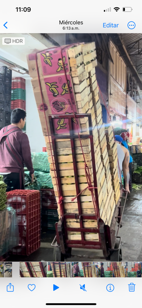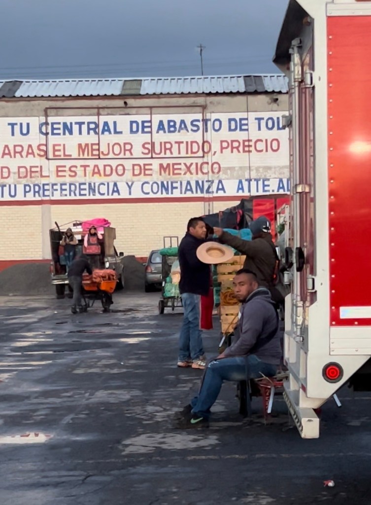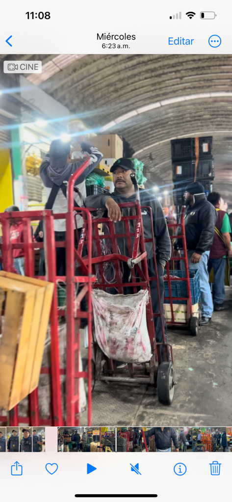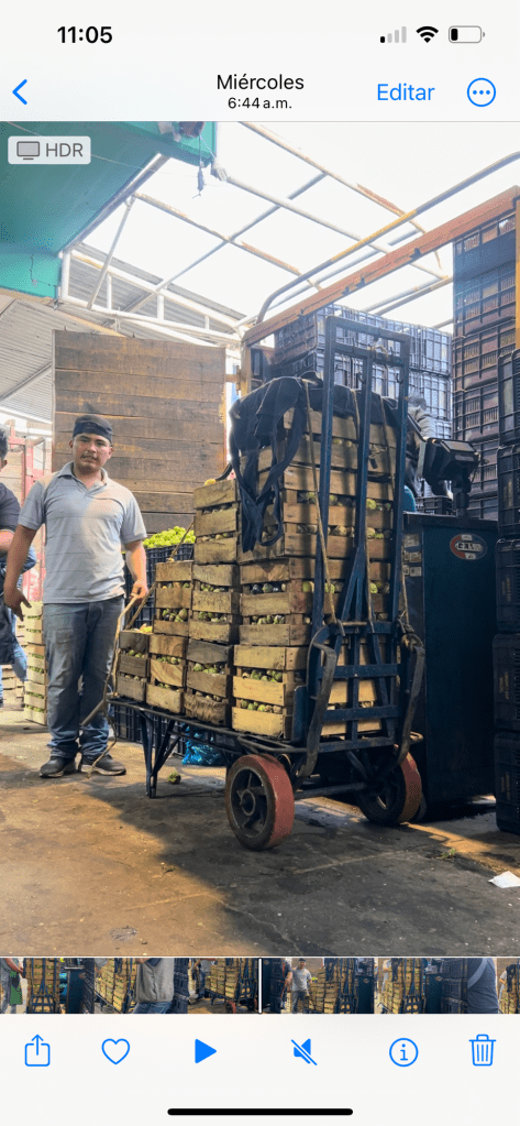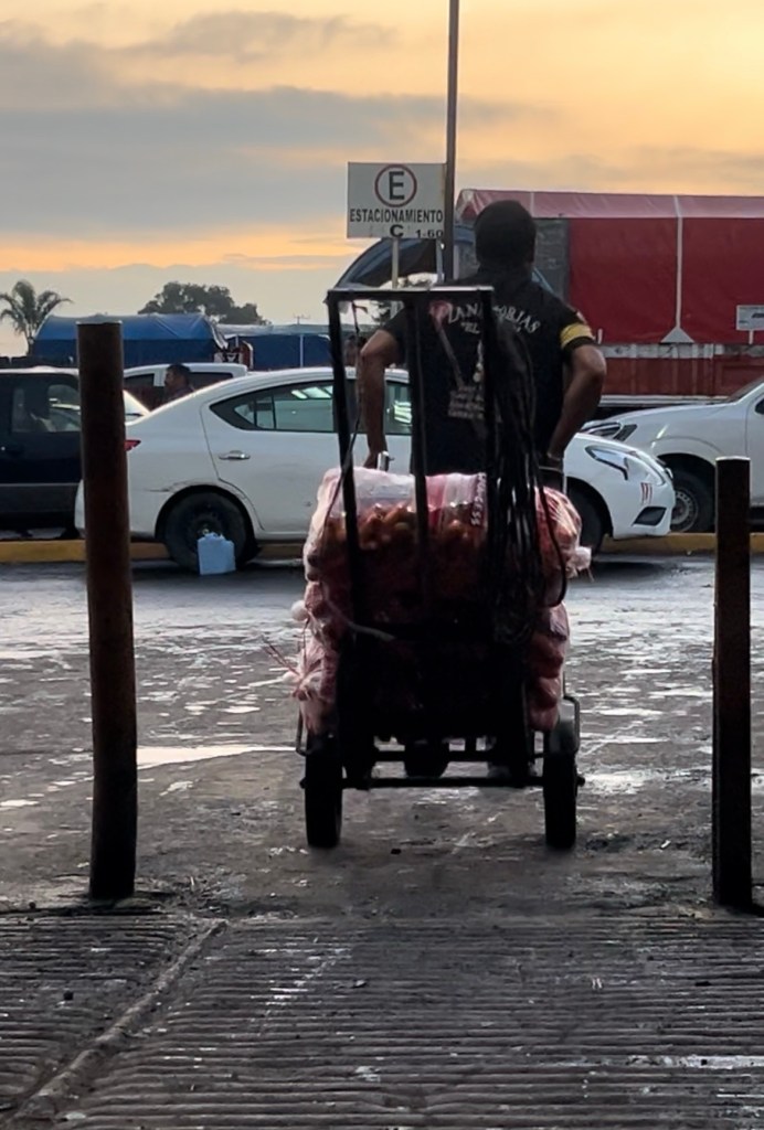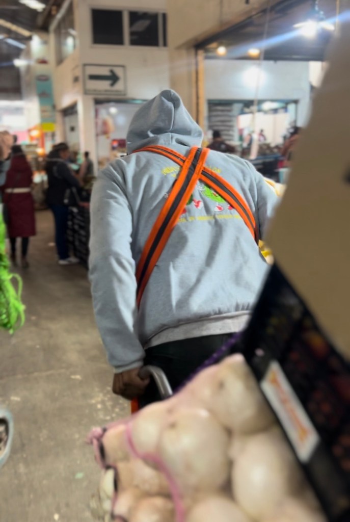 Trabaja de “diablero”, igual que otros mil cargadores en la Central de Abasto de Toluca.