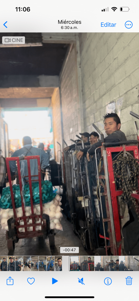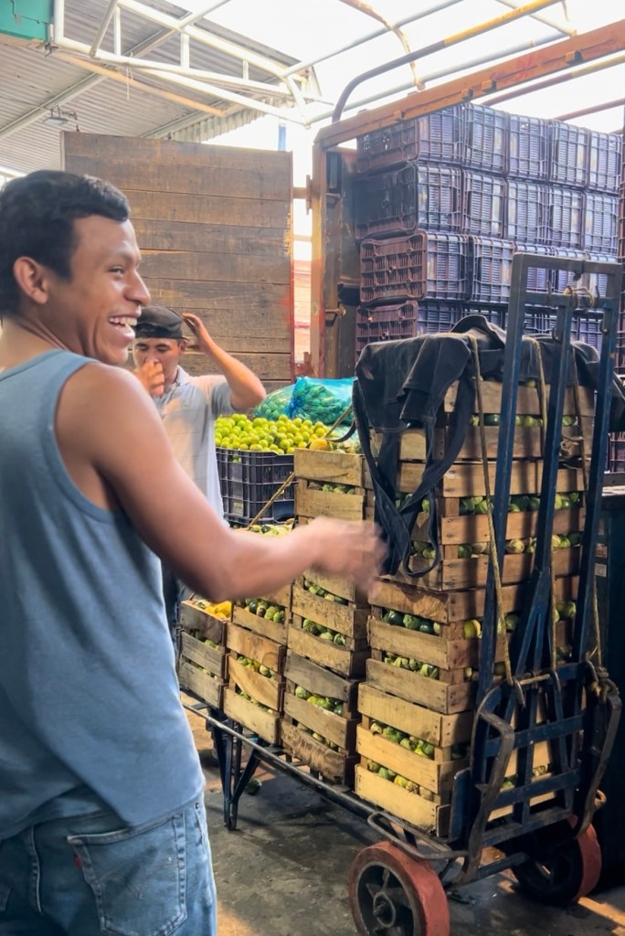 «Cuando te agarran sin calentar, la verdad si te das tus torzones, un hombro o la cintura, pero ya depende si te toca algo ligero como el tomate, puedes calentar pero si te toca un bulto de papas, ahí si es duro», comenta Charly luego de tomar un rato de descanso. Para luego continuar.
