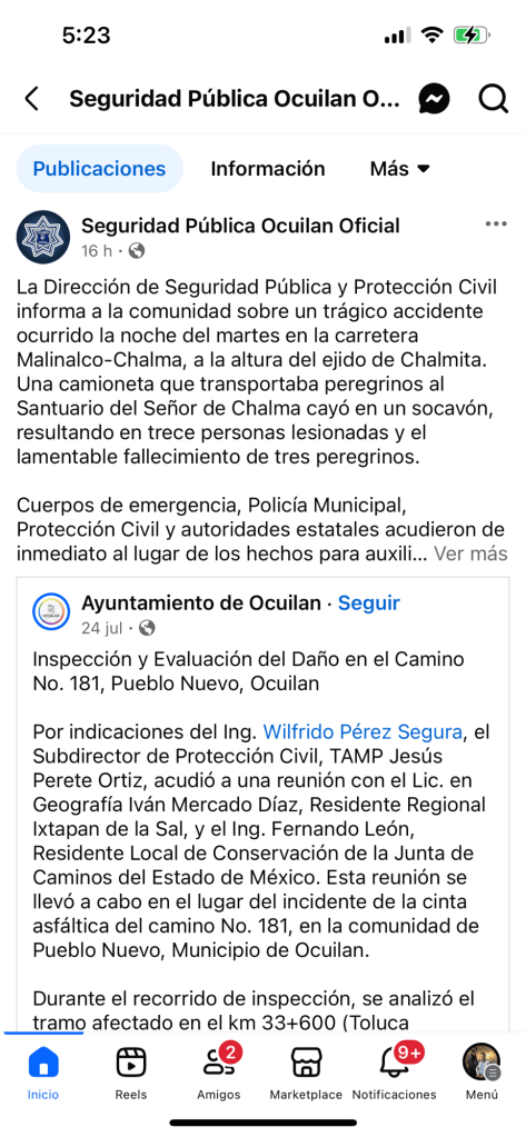 Este fue el informe del gobierno de Ocuilan vía la Dirección de Seguridad Pública.👇