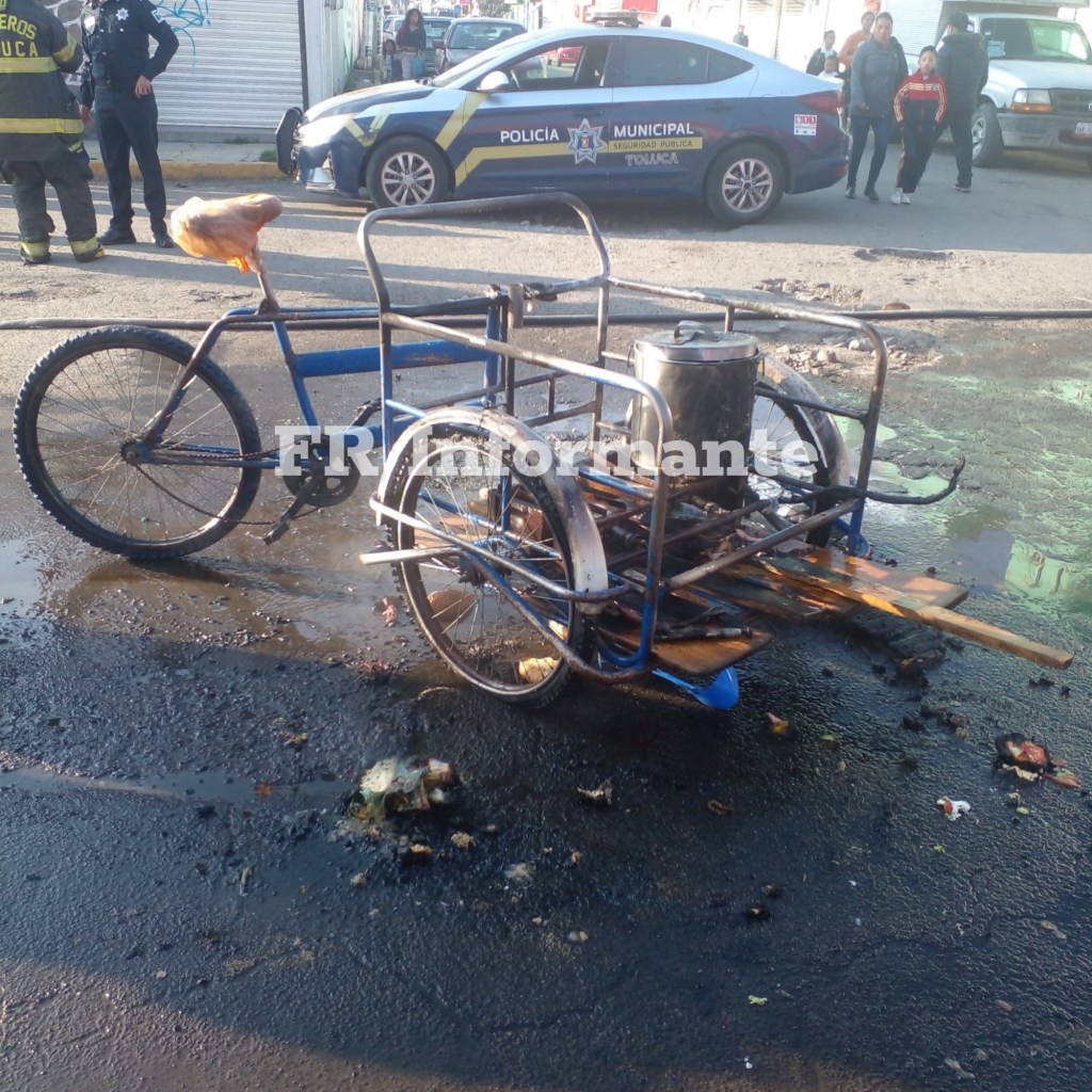 📌El vendedor había salido desde la madrugada de este martes para iniciar su venta pero de pronto su triciclo se comenzó a incendiar.