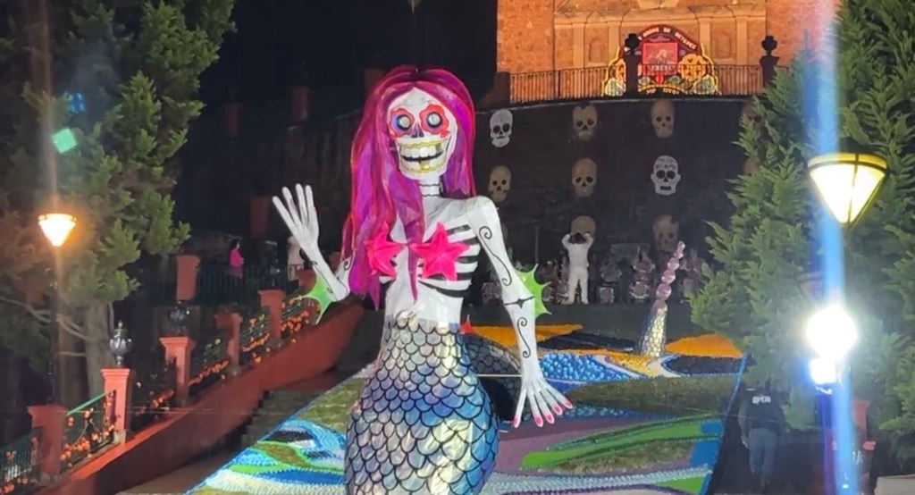 Con un impresionante evento de fuegos de pirotecnia y luces, así como danzantes, fue inaugurado la megaofrenda para celebrar el Día de Muertos en Metepec.
