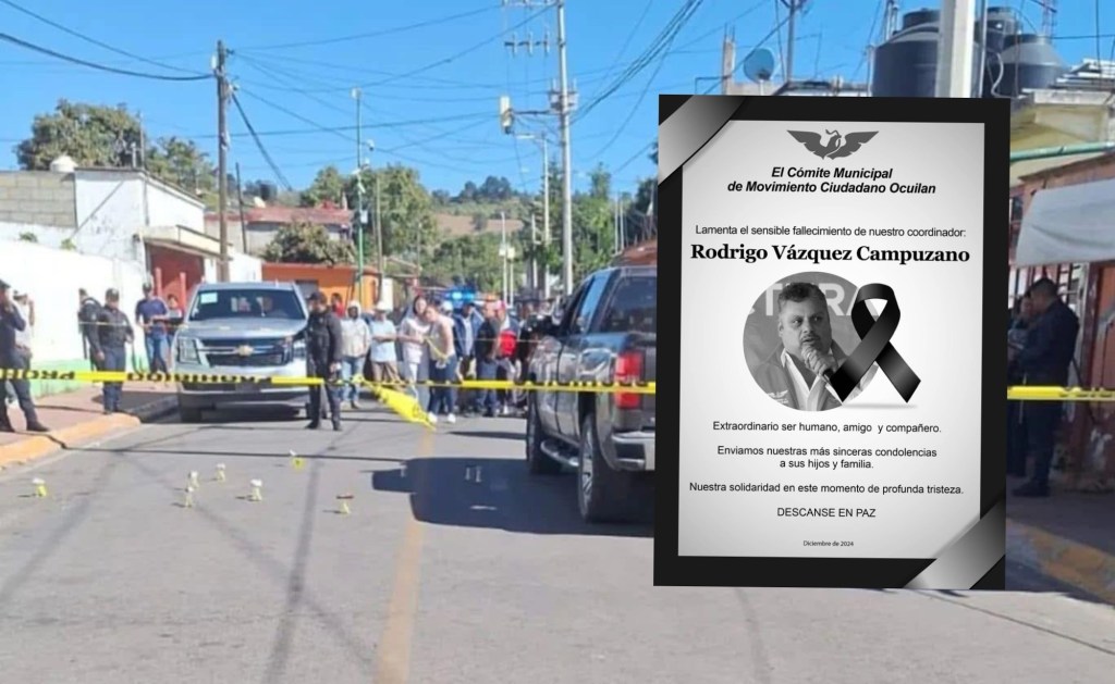 Rodrigo Vázquez Campuzano, quien se desempeñaba como coordinador regional al sur del Estado de México de Movimiento Ciudadano fue desprendido de la vida por varios impactos de ba.la la tarde del domingo en lo que se presume fue ataque directo en pleno centro del municipio de Ocuilan.