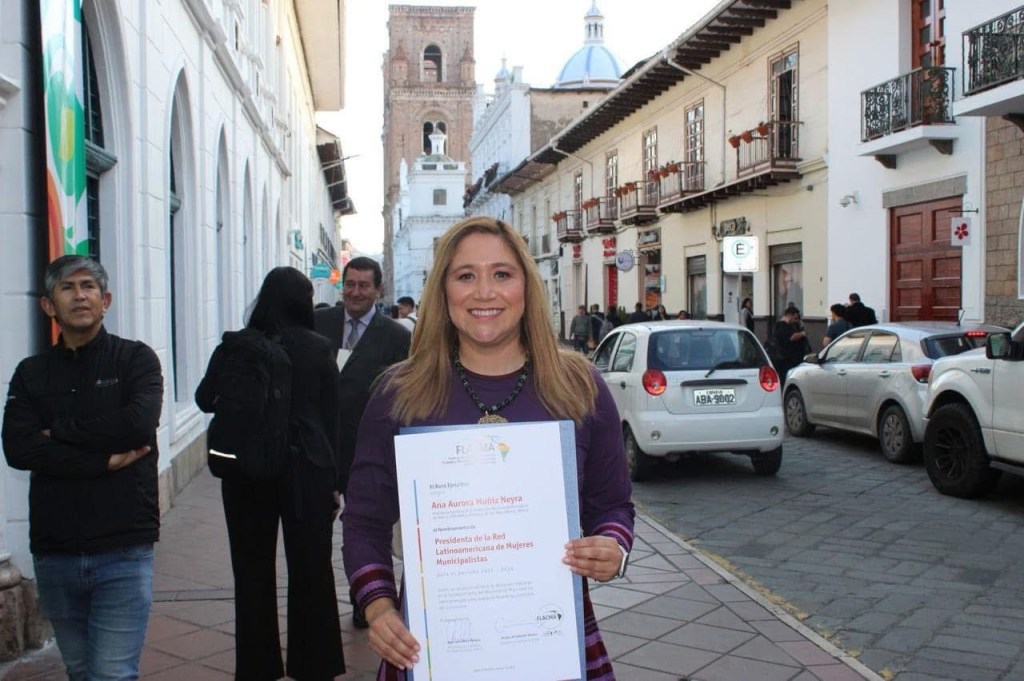 Ana Aurora Muñiz Neyra, co presidenta de la Conferencia Nacional de Municipios de México (CONAMM) y alcaldesa de San Mateo Atenco, México, asumió desde Ecuador la presidencia de la Red Latinoamericana de Mujeres Municipalistas, organismo integrante de la Federación Latinoamericana de Ciudades, Municipios y Asociaciones de Gobiernos Locales (FLACMA).