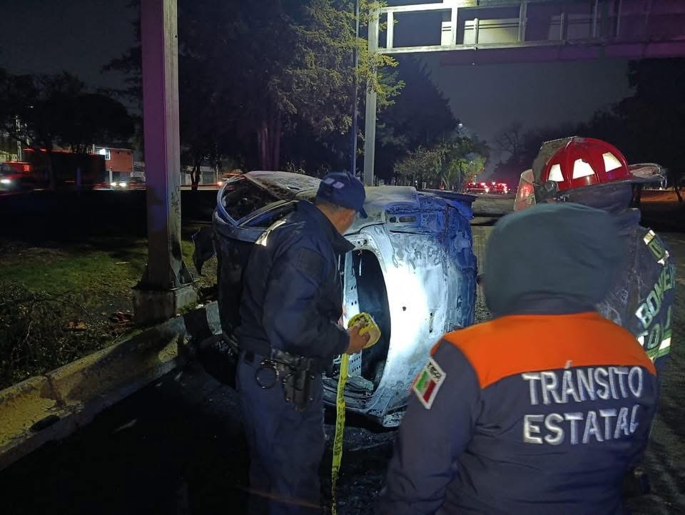 Según el informe de Protección Civil y Bomberos de Toluca, durante la madrugada se registró el incendio del vehículo Nissan March sobre Tollocan a la altura del Centro Médico ISSEMYM.