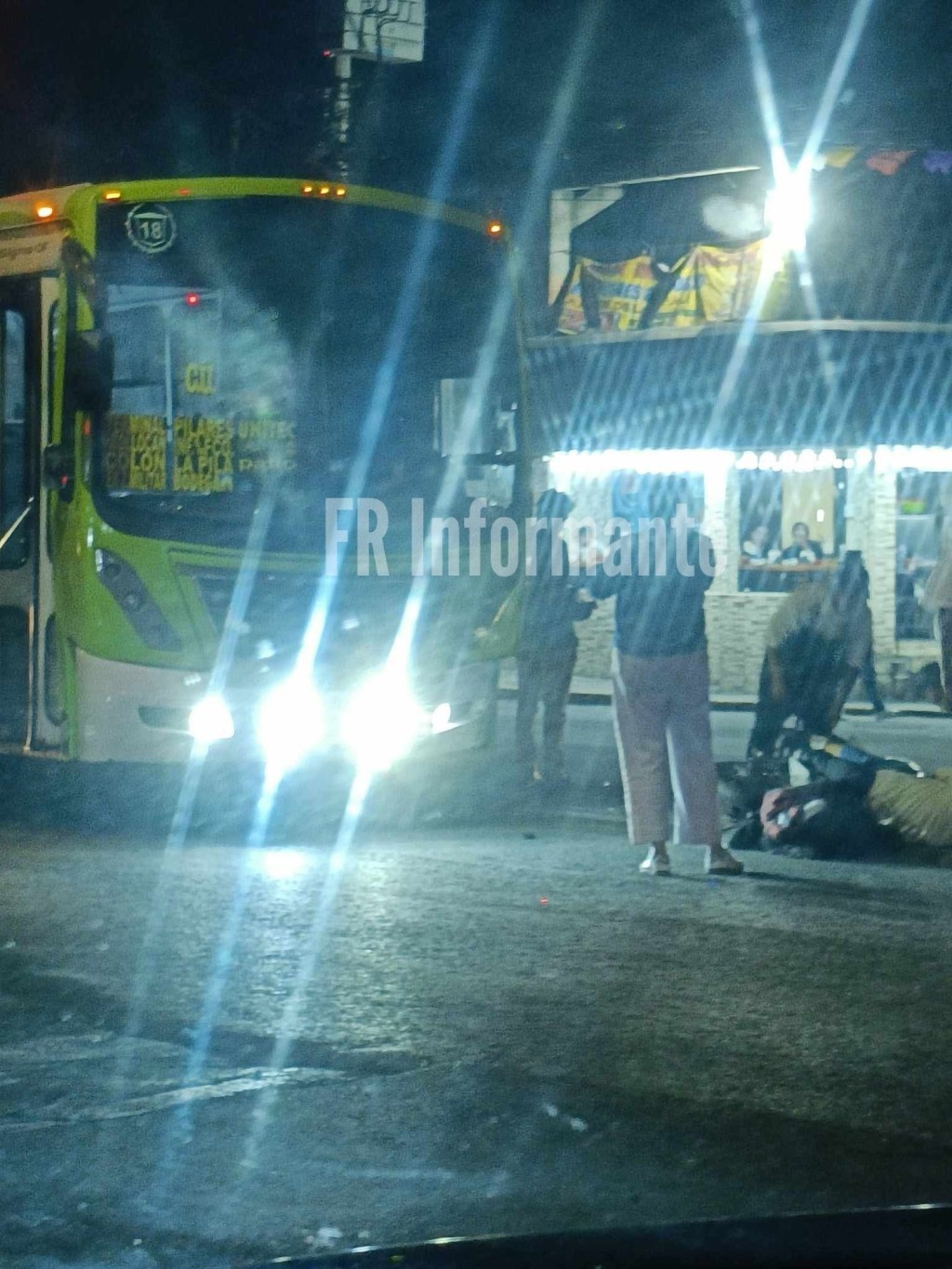 Según testigos, la unidad con económico 18, de forma imprudente rebasó a otro camión que estaba descendiendo pasajeros pero al acelerar terminó atropellando la motocicleta desde la parte trasera con la pareja a bordo.