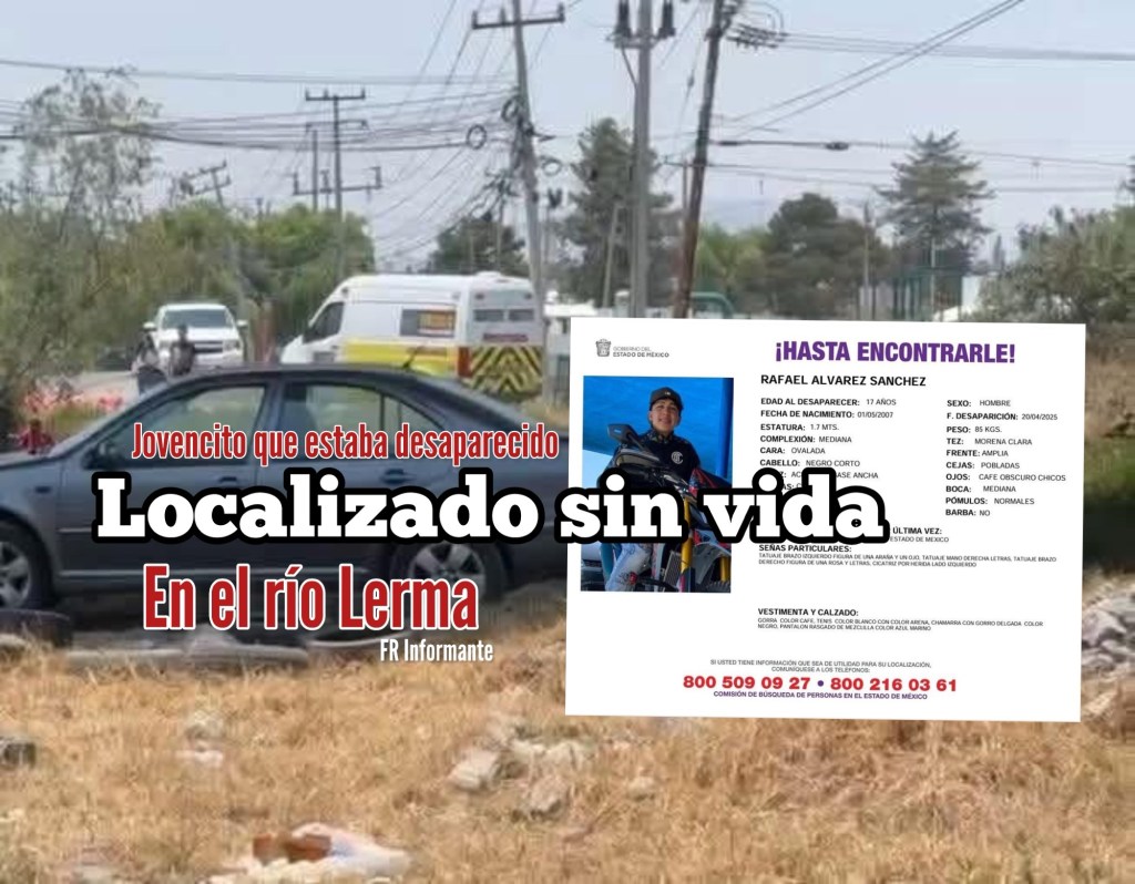 Rafael “N”, de 17 años, había sido reportado como desaparecido en el barrio de Santiago en San Mateo Atenco, pero este miércoles fue hallado sin vid4 en el río Lerma.