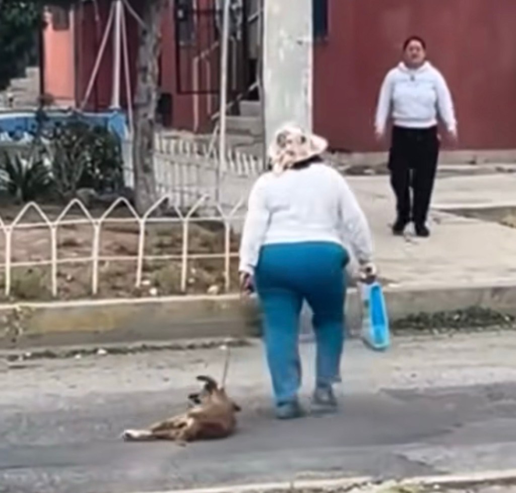 Sin embargo, una mujer se le acercó y le reclamó, luego liberó al perrito mientras que la agresora del cachorro solo se reía.