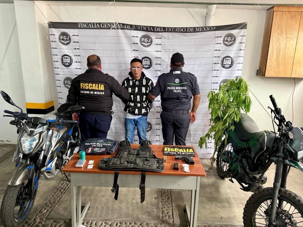 El sujeto, de 34 años de edad, está vinculado a una red delictiva relacionada con homicidios, extorsión, secuestros, narcotráfico y robo de vehículos. Su captura se realizó tras un operativo de inteligencia y patrullaje sobre la carretera Toluca–Ixtlahuaca, cuando intentó huir al ser interceptado a bordo de una motocicleta con reporte de robo, portando un chaleco táctico apócrifo con insignias policiales.