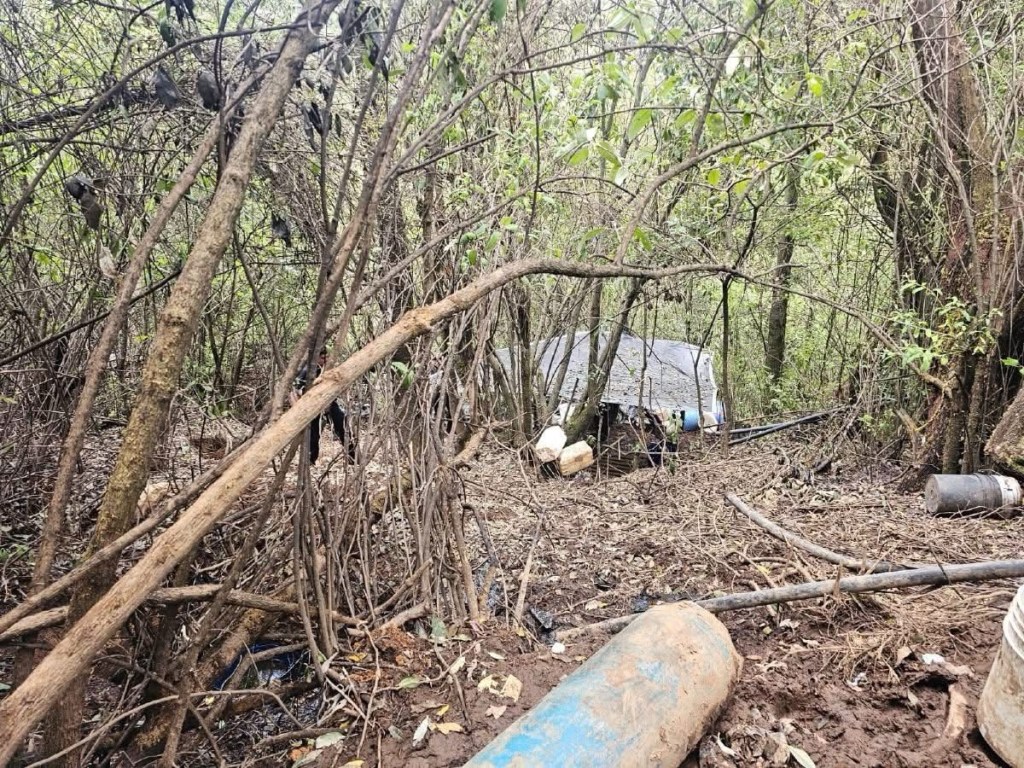 Otzolotepec, Estado de México, 28 de junio de 2025*.- Elementos de las Secretarías de Seguridad del Estado de México (SSEM), Defensa y Guardia Nacional (GN), localizaron un predio donde se encontraba un aparente laboratorio clandestino para la elaboración de sustancias ilícitas.