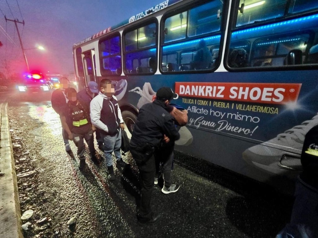 El dispositivo se llevó a cabo en la zona de Isidro Fabela y Filiberto Gómez, colonia Guadalupe y Club Jardín, delegación La Maquinita, donde policías municipales realizaron revisiones preventivas en unidades de transporte.