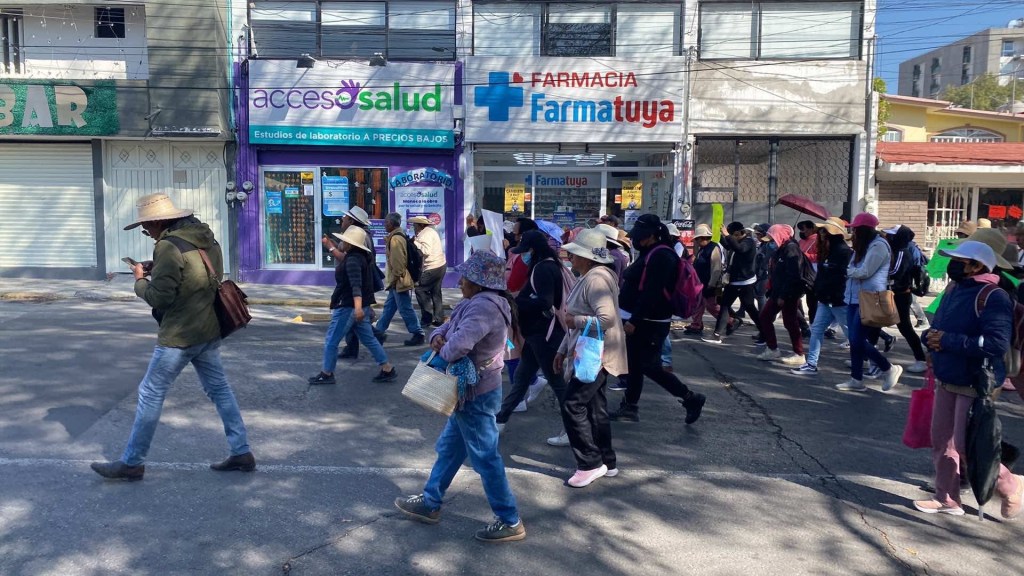 Habitantes del barrio del Cajón de San Pablo Autopan, protestaron este miércoles frente al Palacio del gobierno estatal, para exigir la reapertura del pozo que fue clausurado mediante el operativo caudal implementado por la Fiscalía mexiquense derivado del llamado huachicol de agua.