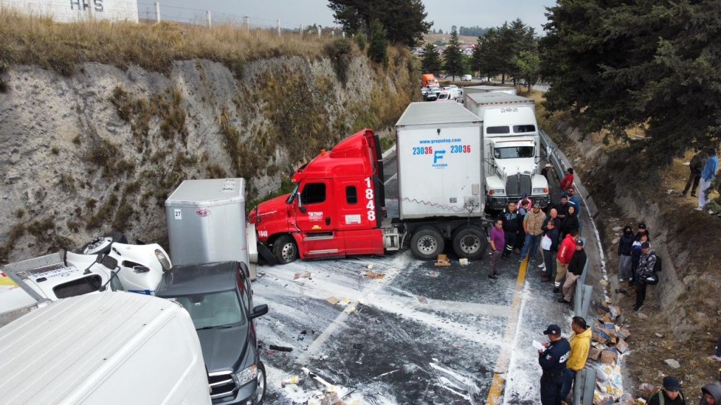 Una carambola entre dos camiones de carga y tres vehículos particulares ocurrido en la autopista Toluca-Atlacomulco, dejó tres niñas y una mujer adulta lesionadas.